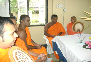 After the retirement of Mr.R.W.M.K.U.B.Rajapakshe is the previous principal of Ankumbura central collage. Venerable Haliyadde Sarananda received the duties as new principal of our school. The thero worked as an academic staff member of our school. To mark this event a pirith ceremony and alms giving was held of the school.